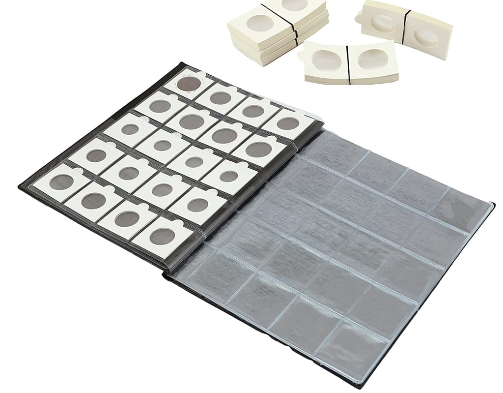 Convenient Coin Holder: The album includes a coin holder with multiple compartments. The outer size of the holder is 2x2 inches, and the inner hole sizes range from 22mm to 33mm, accommodating different coin sizes. The holder comes with a total of 250 pieces, providing ample space for your coin collection.
